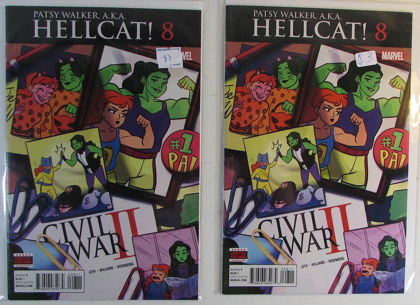 Grade: 9.4 Near Mint Cosmic-King HomeView All ListingsSee FeedbackAdd to Favorite SellersLeave FeedbackDESCRIPTIONPatsy Walker, A.K.A. Hellcat! Lot of 2 #8 x2 Marvel Comics 2016 9.4 NM Near Mint Condition Modern Ag ... Read More