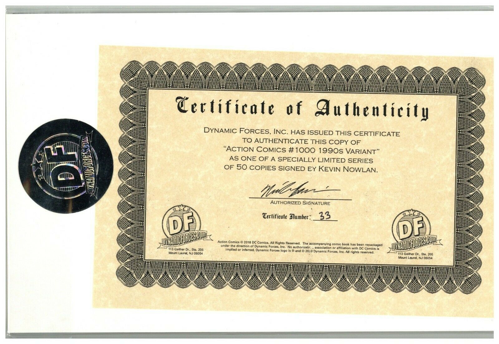 Action Comics 1000 Signed by Kevin Nowlan Dynamic Forces COA NM;
