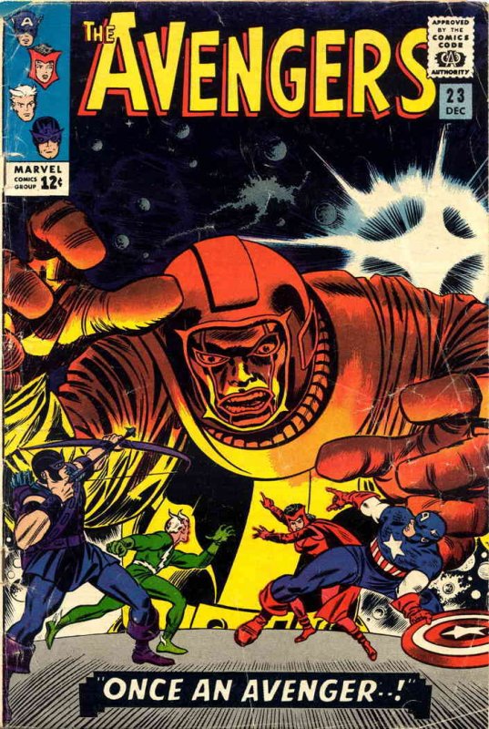 Item: Avengers, The #23 | Publisher: Marvel | Cover Date: December 1965 | Writer: Stan Lee | Artist: Don Heck | Cover Artist: Jack Kirby | Appearances: Ravonna, Kang (Nathaniel Richards), Captain America (Steve Roge ... Read More