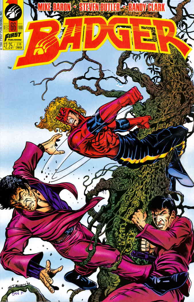 Item: Badger #66 | Publisher: First | Cover Date: December 1990 | Writer: Mike Baron | Artist: Steven Butler | Cover Artist: Steven Butler | Storylines: The Wotan Seed | With Economy shipping, each additional comic ships for just 50 cents more to customers in the USA. This listing contains a stock photo and information from ComicBase™ and © Human Computing. The stock photo is for reference only. If you would like to see a photo of the actual item, please message us prior to purchasing.Seller Information