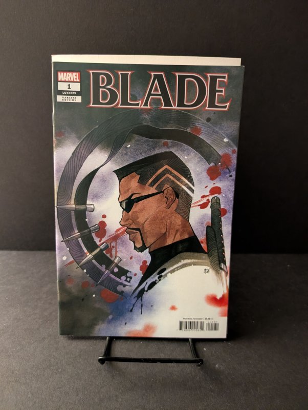 Written by Bryan Hill. Art by Elena Casagrande. Cover by Peach Momoko. Marvel's slickest vampire hunter returns in a brand new ongoing by Bryan Hill (KILLMONGER) and Elena Casagrande (BLACK WIDOW)! True evil is patient. And a dark, ancient power has been simmering quietly for centuries…and when Blade himself is the one to unknowingly unleash it, Marvel's entire supernatural underworld will come out of hiding to demand he handle it. Or pay a pound of flesh for his mistakes. Bloodbaths, blackmail and Blade - you won't want to miss the explosive first issue of this new volume! 40 pages, full color. Rated Parental Advisory Cover price $4.99.Seller Information