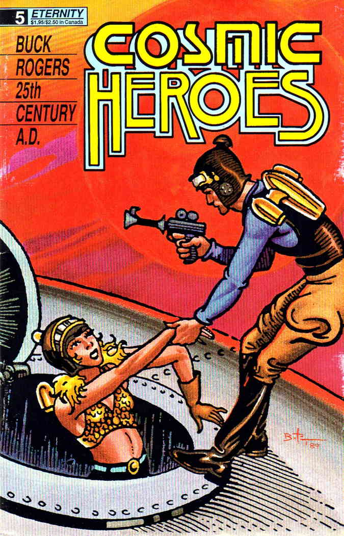Item: Cosmic Heroes #5 | Publisher: Eternity | Cover Date: March 1989 | Writer: Phil Nowlan | Artist: Dick Calkins | Appearances: Buck Rogers, Wilma Deering, Dr. Huer, Killer Kane, Princess Ardala | Storylines: Planetoid Plot, Part 1 (#193-338) | Notes: Reprints Buck Rogers 25th Century A.D. comic strip (daily): #193-241; Buck Rogers; B&W; Bruce Timm Cover Coloring | With Economy shipping, each additional comic ships for just 50 cents more to customers in the USA. This listing contains a stock photo and information from ComicBase™ and © Human Computing. The stock photo is for reference only. If you would like to see a photo of the actual item, please message us prior to purchasing.Seller Information