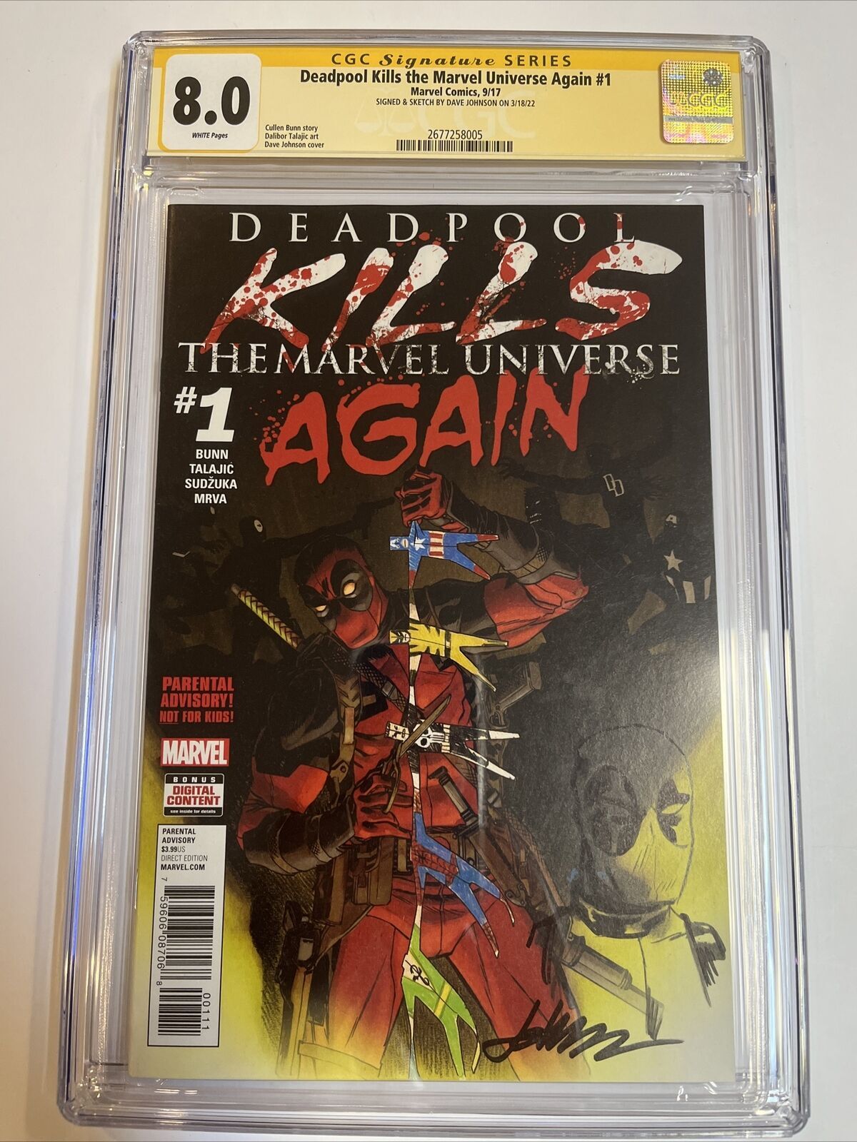 Deadpool Kills Marvel Universe # 1 (CGC 8.0 SS) Signed & Sketch Dave Johnson