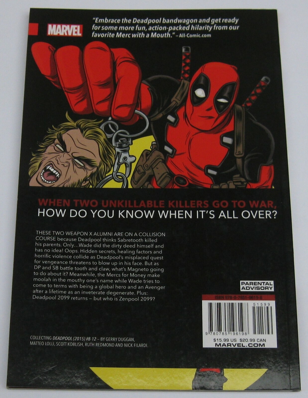 Grade: 9.4 NM NM condition (9.4). First print. Deadpool vs. Sabretooth. ISBN: 978-0-7851-9619-8.