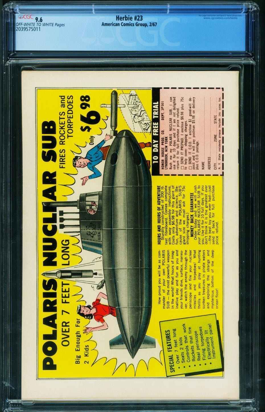 Grade: 9.6 HERBIE #23 CGC 9.6 1967 Last issue! comic book 2039575011 Last issue. Grade: 9.6 SKU: CK59-084