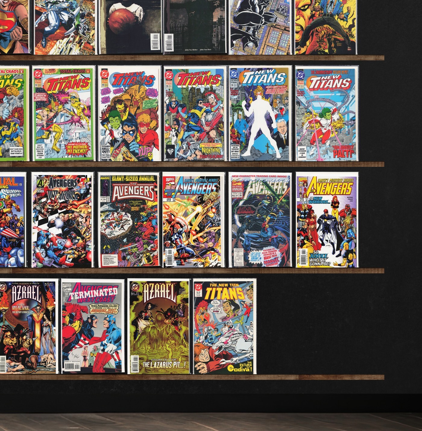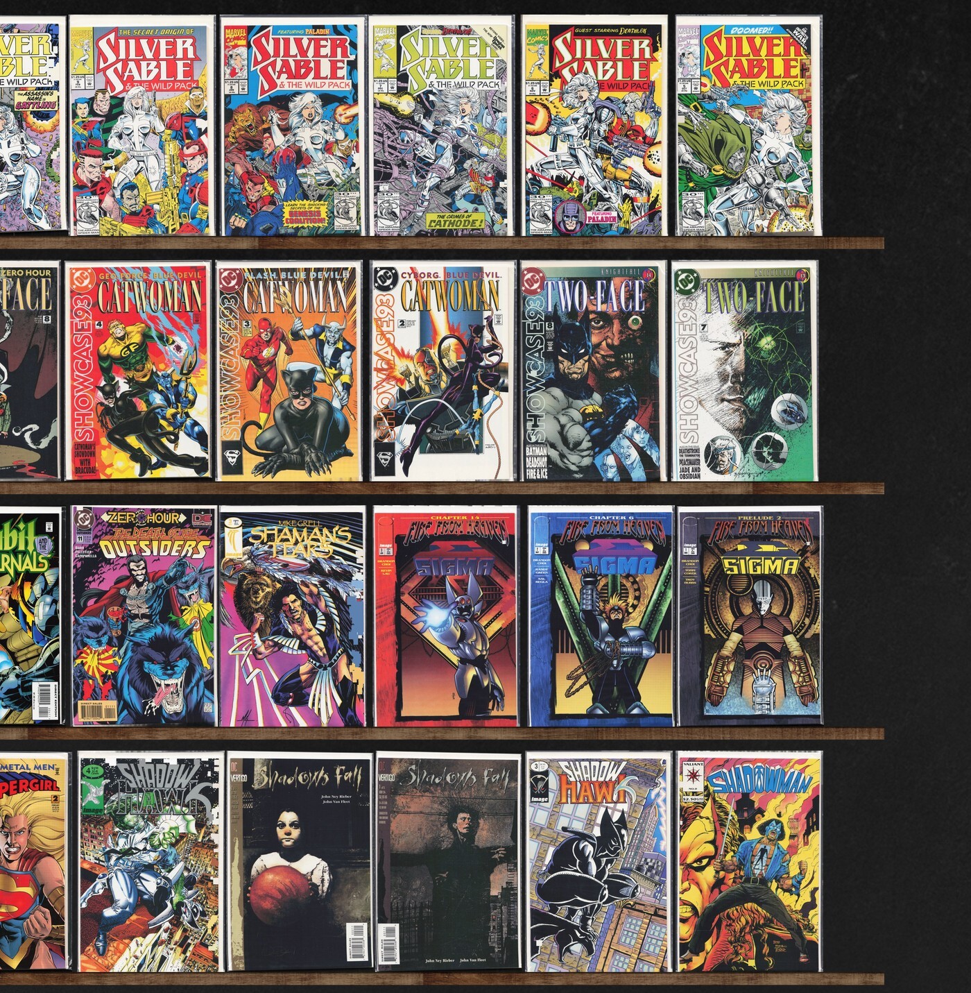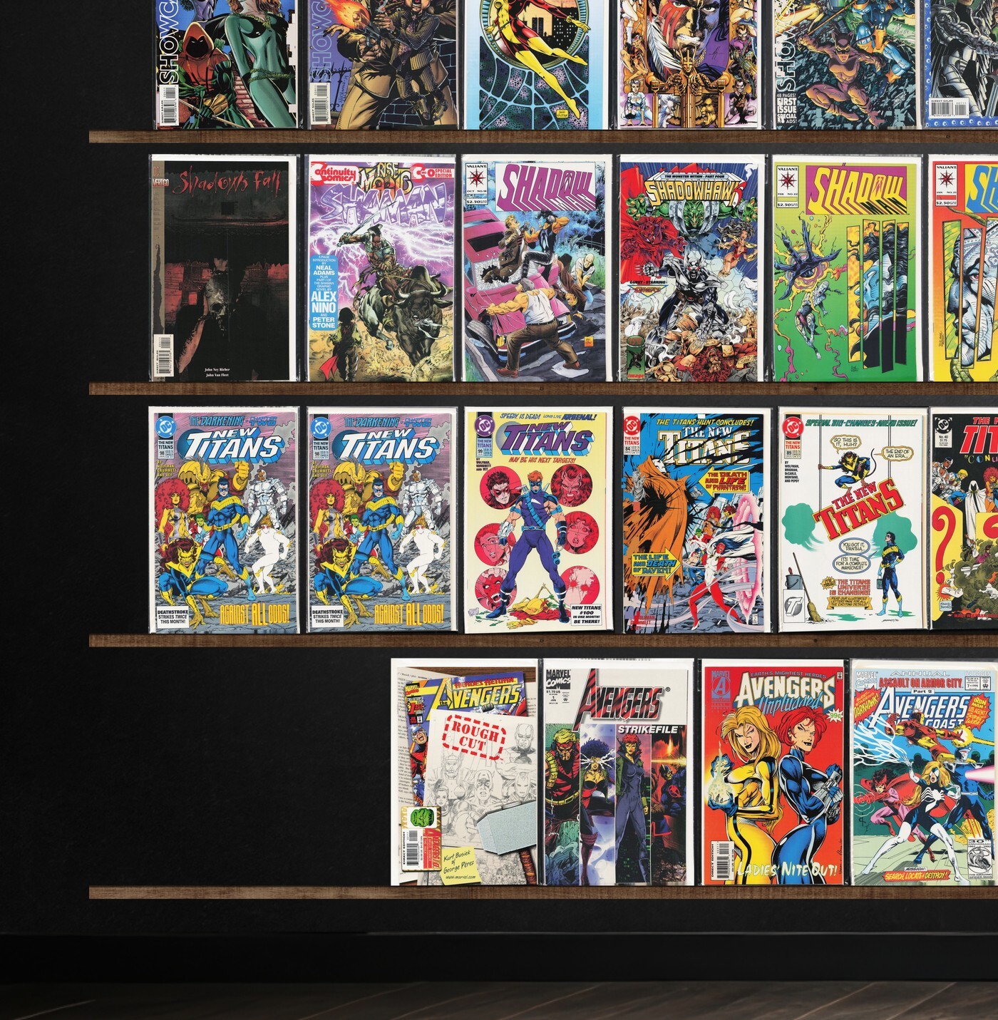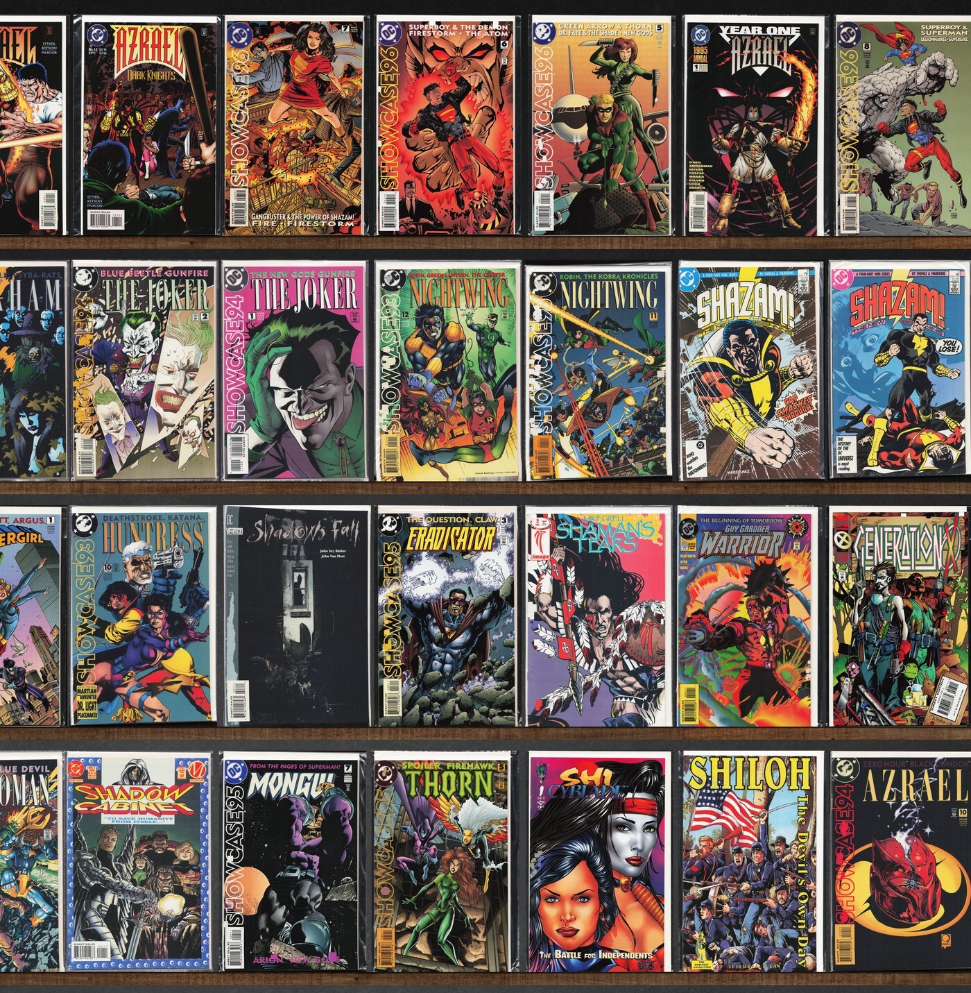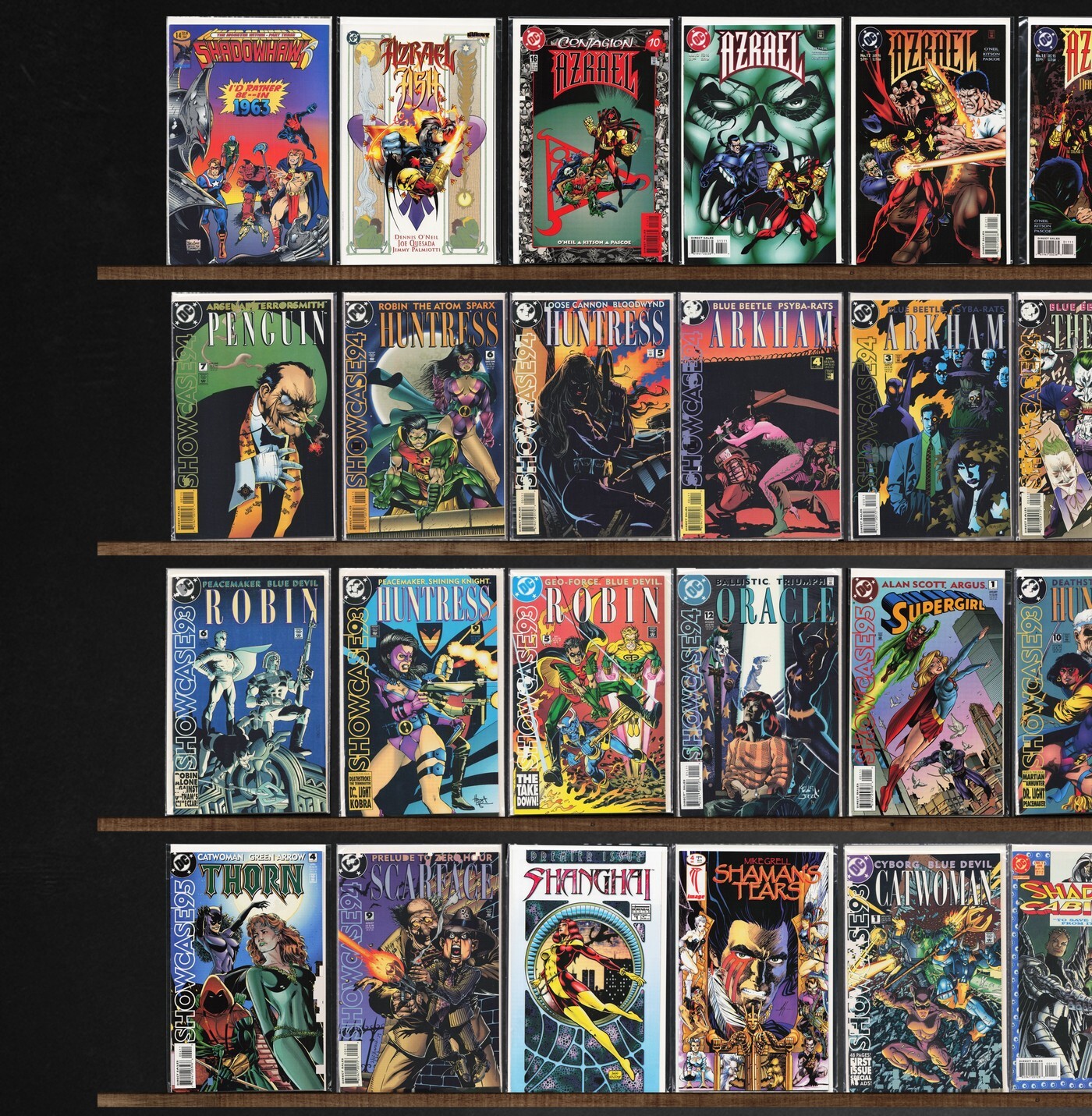 Azrael, Showcase '94, Showcase '93, The New Titans, Shadowman, Shadowhawk, Showcase '95, Generation X, Avengers West Coast, Showcase '96, Shadows Fall, Shaman'S Tears, Generation Next, Sigma, Avengers, The Shroud, The Avengers Annual, Azrael/Ash (1997) Ash, Azrael Annual, Guy Gardner: Warrior, Outsiders, Shanghai (1997), Shadow Cabinet, Shi/Cyblade (1995), Shaman, Avengers/Ultraforce (1995) Ultraforce, Avengers Strikefile (1994), Avengers Unplugged