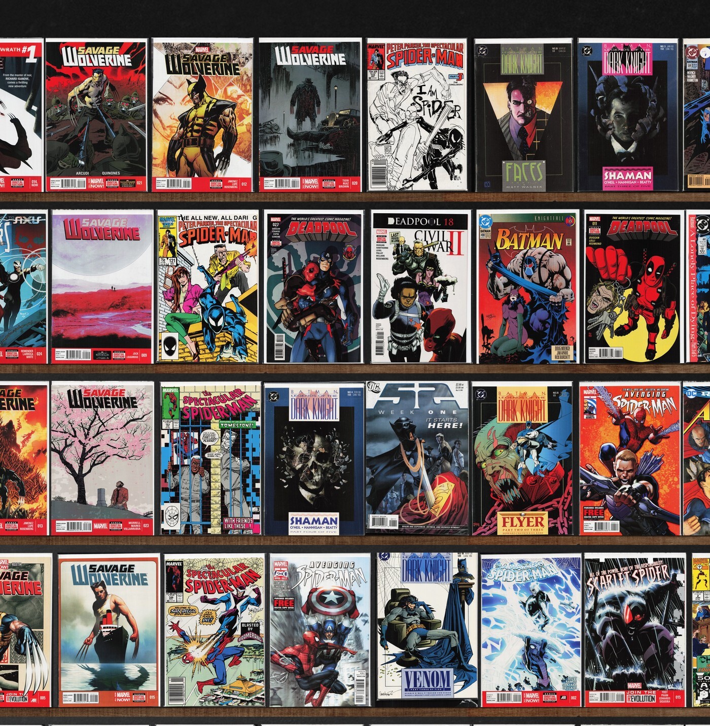 Savage Wolverine, The Spectacular Spider-Man, Deadpool, Batman, Titans, Legion Of Super Heroes, Teen Titans, Action Comics, The Amazing Spider-Man, Thanos, The New Mutants, Dead Man Logan, Iron Man, Dial H, Avengers Vs. X-Men, Superior Carnage, 52, Avenging Spider-Man, Superman, Avengers Assemble, The Outsiders, Web Of Spider-Man, Wolverine: Origins, Avx: Vs, Amazing X-Men, Venom, Justice League, Iron Man Annual, Aquaman, Scarlet Spider, Ultimate Comics Wolverine, T.H.U.N.D.E.R. Agents, New Avengers, Ultimate Spider-Man, The Sensational Spider-Man, Ultimate Comics Ultimates, Batman And Robin, Avengers