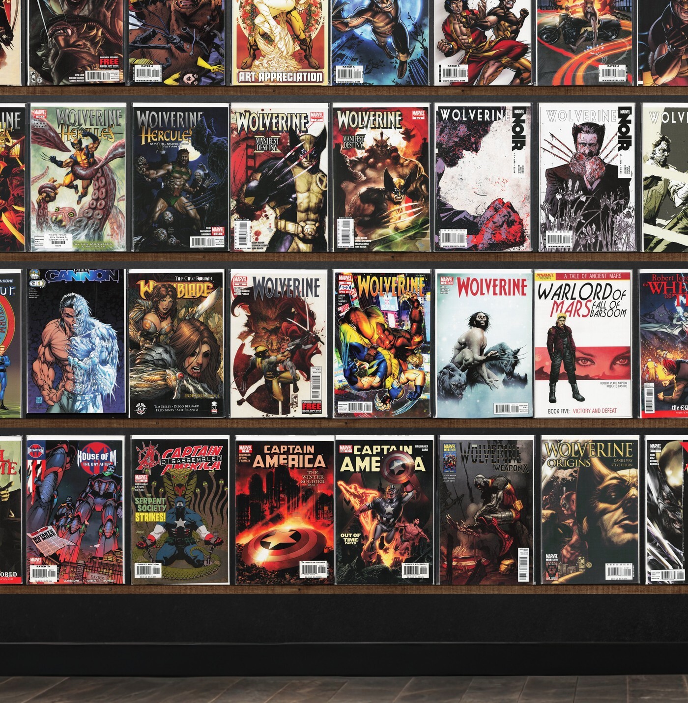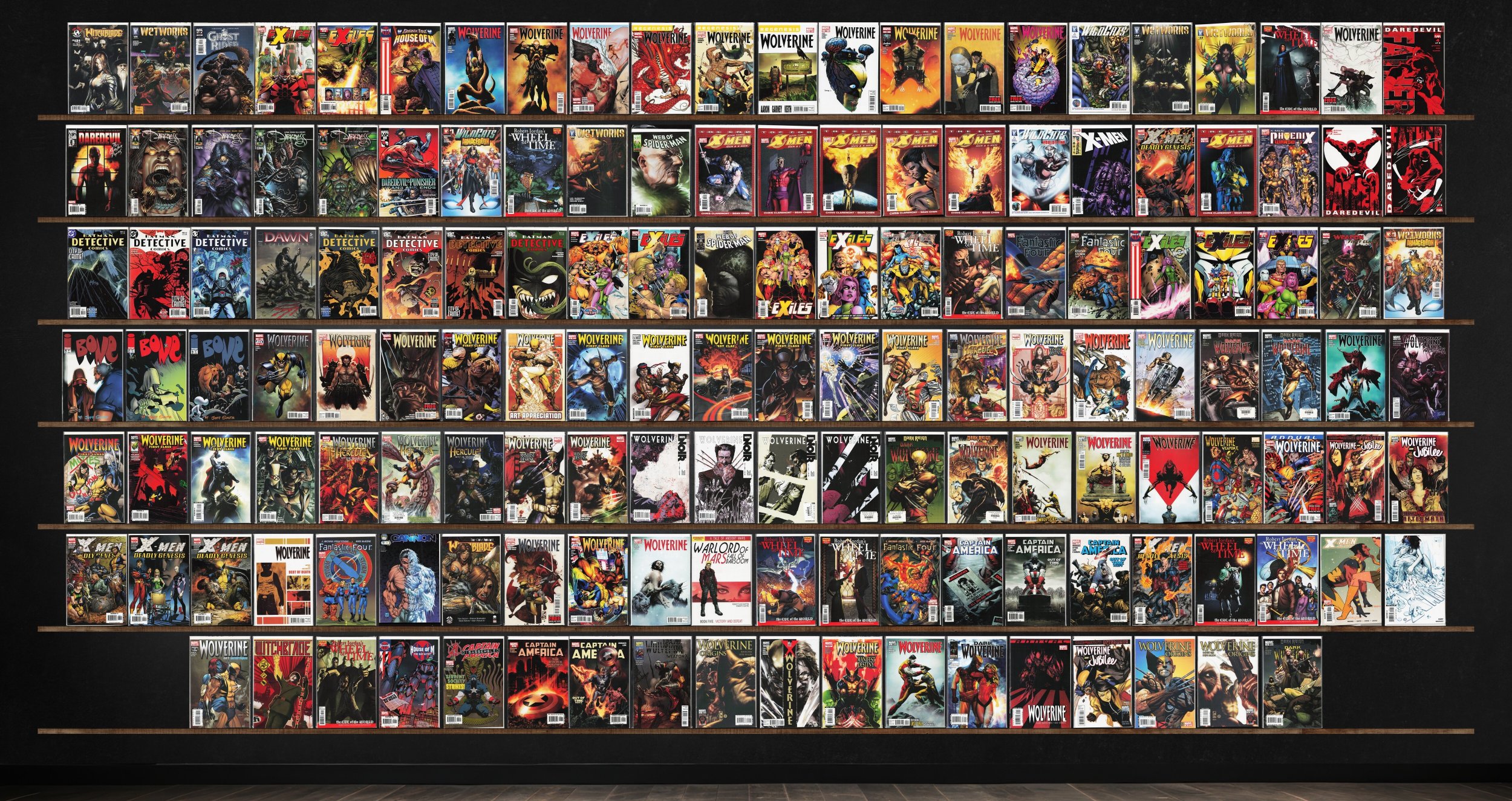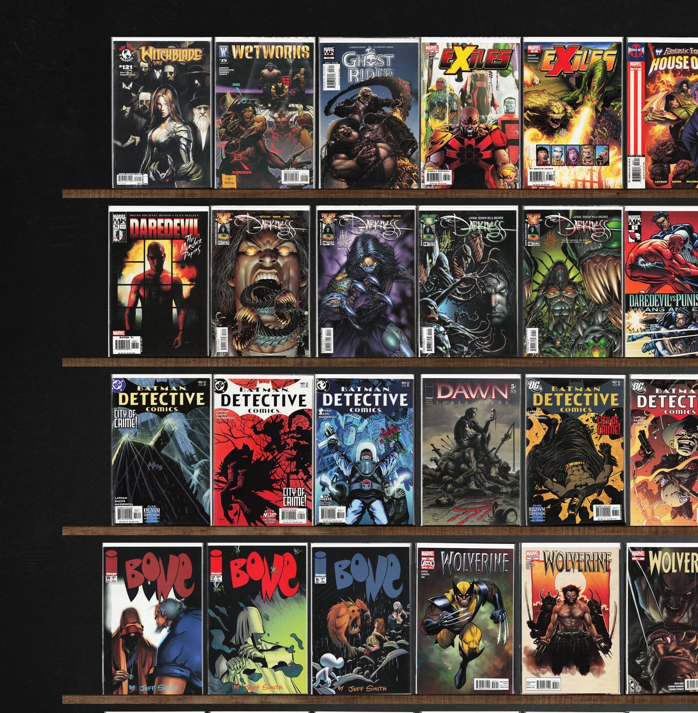 Wolverine, Wolverine: First Class, Exiles, Detective Comics, Dark Wolverine, Captain America, X-Men: Deadly Genesis, Wetworks, The Darkness, Fantastic Four, Wolverine: Manifest Destiny, Wolverine Noir, Robert Jordan&, Daredevil: Father, Bone, Wolverine Weapon X, Wolverine And Jubilee, Wolverine: Origins, Witchblade, Wildcats, X-Men, Ghost Rider, Daredevil, Daredevil Vs. Punisher, Web Of Spider-Man, Dawn: Three Tiers, The Amazing Spider-Man, X-Men Unlimited, Witchblade Annual, Wolverine Annual