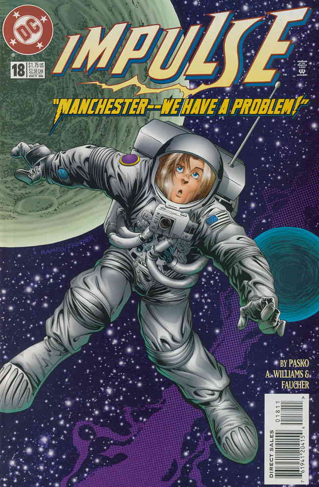 Item: Impulse #18 | Publisher: DC | Cover Date: October 1996 | Writer: Martin Pasko | Artist: Anthony Williams | Cover Artist: Humberto Ramos | Appearances: thieves stealing NASA virtual reality technology | Storylines: Virtually Wasted | Notes: Versus thieves stealing NASA virtual reality technology | With Economy shipping, each additional comic ships for just 50 cents more to customers in the USA. This listing contains a stock photo and information from ComicBase™ and © Human Computing. The stock photo is for reference only. If you would like to see a photo of the actual item, please message us prior to purchasing.Seller Information