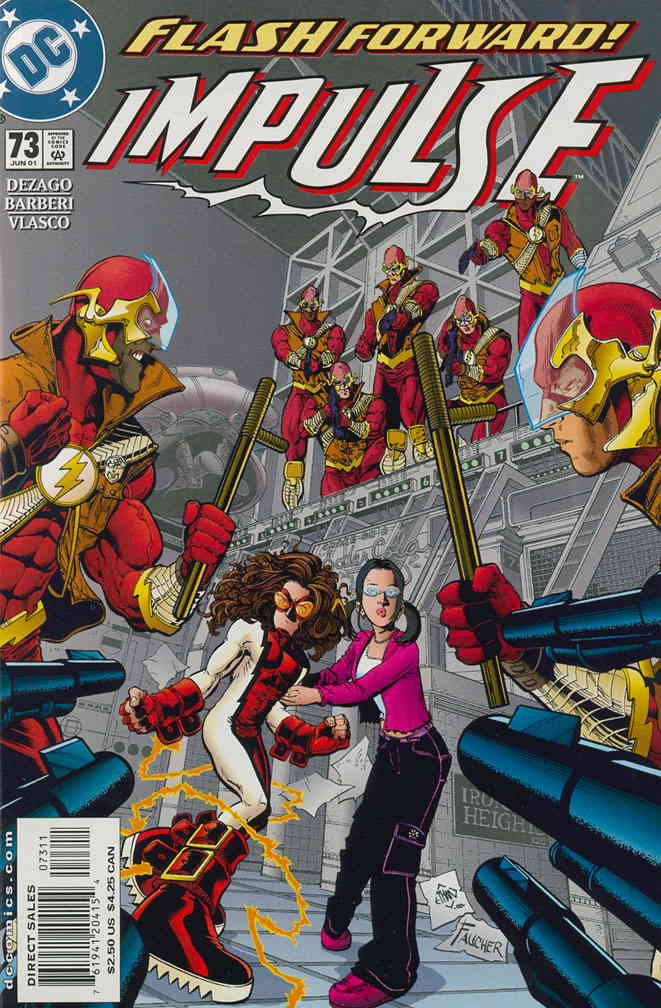 Item: Impulse #73 | Publisher: DC | Cover Date: June 2001 | Writer: Todd Dezago | Artist: Carlo Barberi | Cover Artist: Ethan Van Sciver | Storylines: Dark Tomorrow, Part 1 | With Economy shipping, each additional comic ships for just 50 cents more to customers in the USA. This listing contains a stock photo and information from ComicBase™ and © Human Computing. The stock photo is for reference only. If you would like to see a photo of the actual item, please message us prior to purchasing.Seller Information