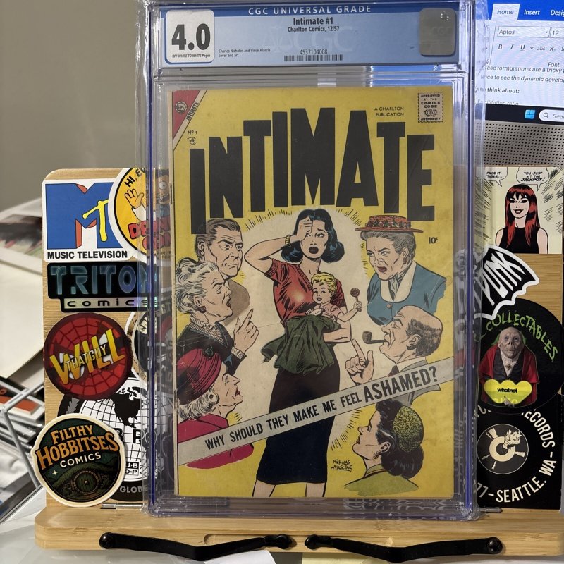Grade: 4.0 Very Good The product is a vintage comic book from 1957 titled "Intimate #1" graded at 4.0 Very Good by the Certified Guaranty Company (CGC). Published by Charlton Comics Group, this comic book is part o ... Read More