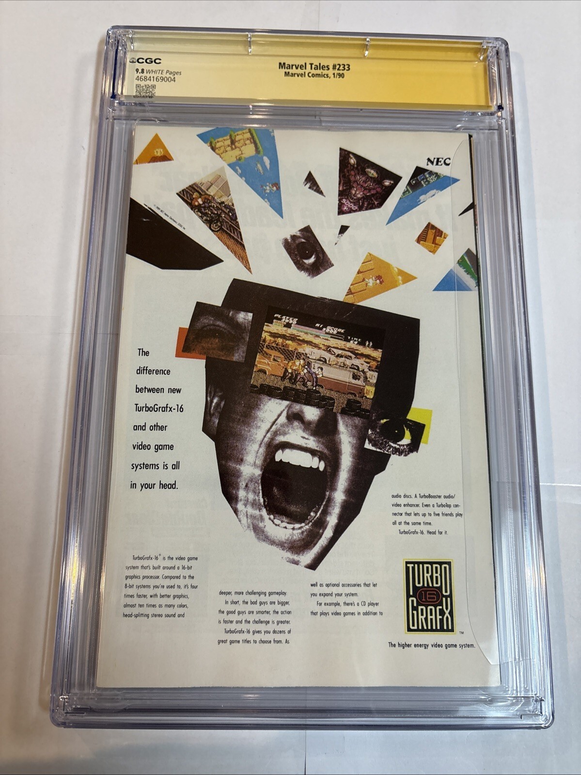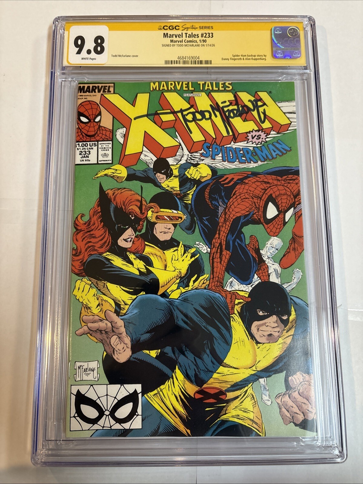 Grade: 9.8 Near Mint/MintCensus=4Dive into the Marvel Universe with Marvel Tales Spider-Man (1990) #233, a must-have for any serious collector or fan. This single issue comic book features the visionary work of Todd McFarlane, known for his iconic run with the X-Men. Celebrating the Copper Age of comics, this edition is a first printing, ensuring its place as a valuable piece of superhero lore.Boasting a CGC grade of 9.8 Near Mint/Mint, this comic is presented in stunning full color, complete with the original, signed cover by Todd McFarlane himself. It's a testament to the artistry and cultural significance of US Comics, ideal for general audience enthusiasts and those passionate about the Marvel (MCU) narrative.