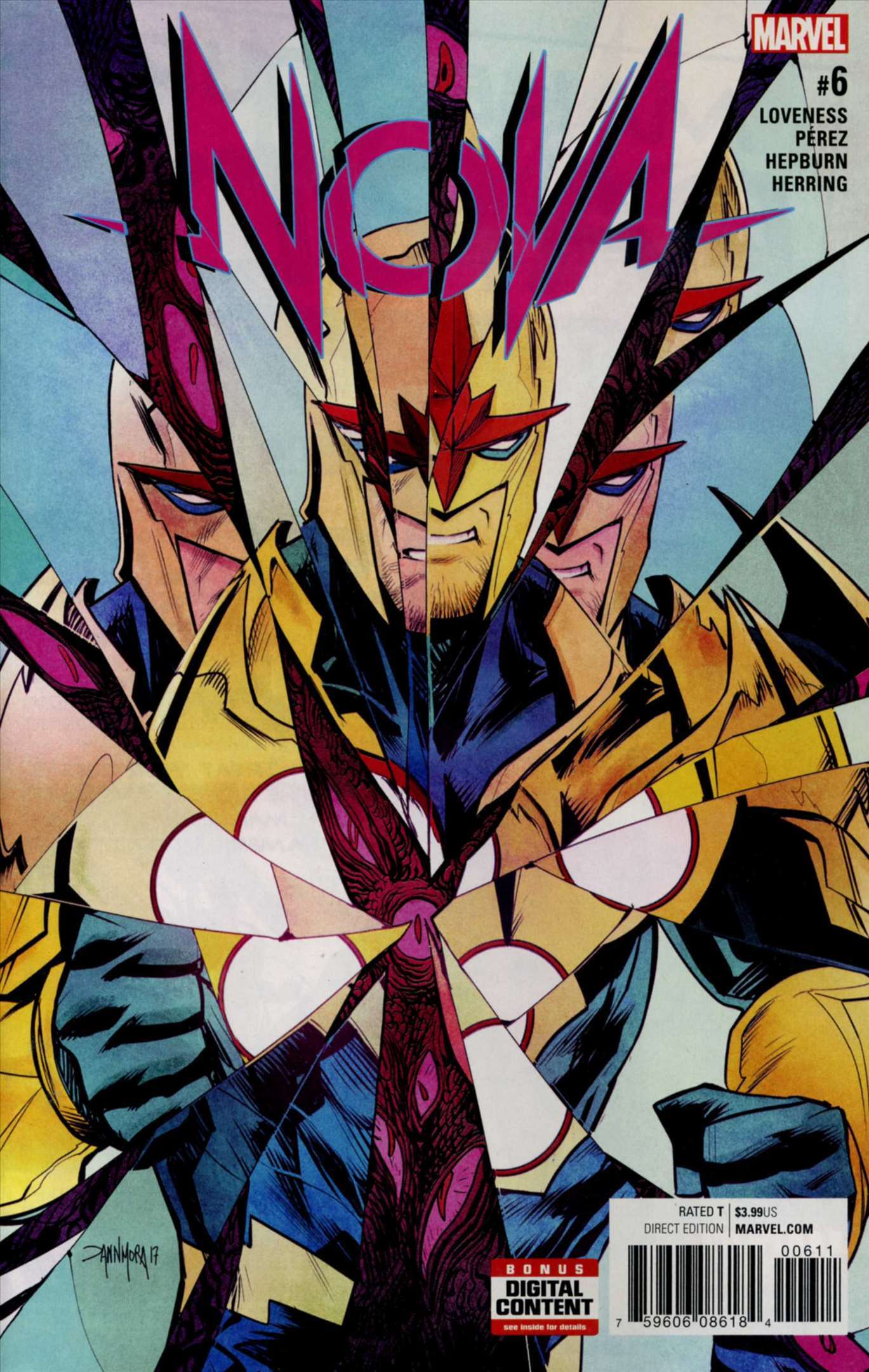 Item: Nova (7th Series) #6 | Publisher: Marvel | Cover Date: July 2017 | Writer: Jeff Loveness | Artist: Ramon K. Perez | Cover Artist: David Marquez | Appearances: Many-Angled Ones, Nova (Richard Rider), Nova (Sam ... Read More