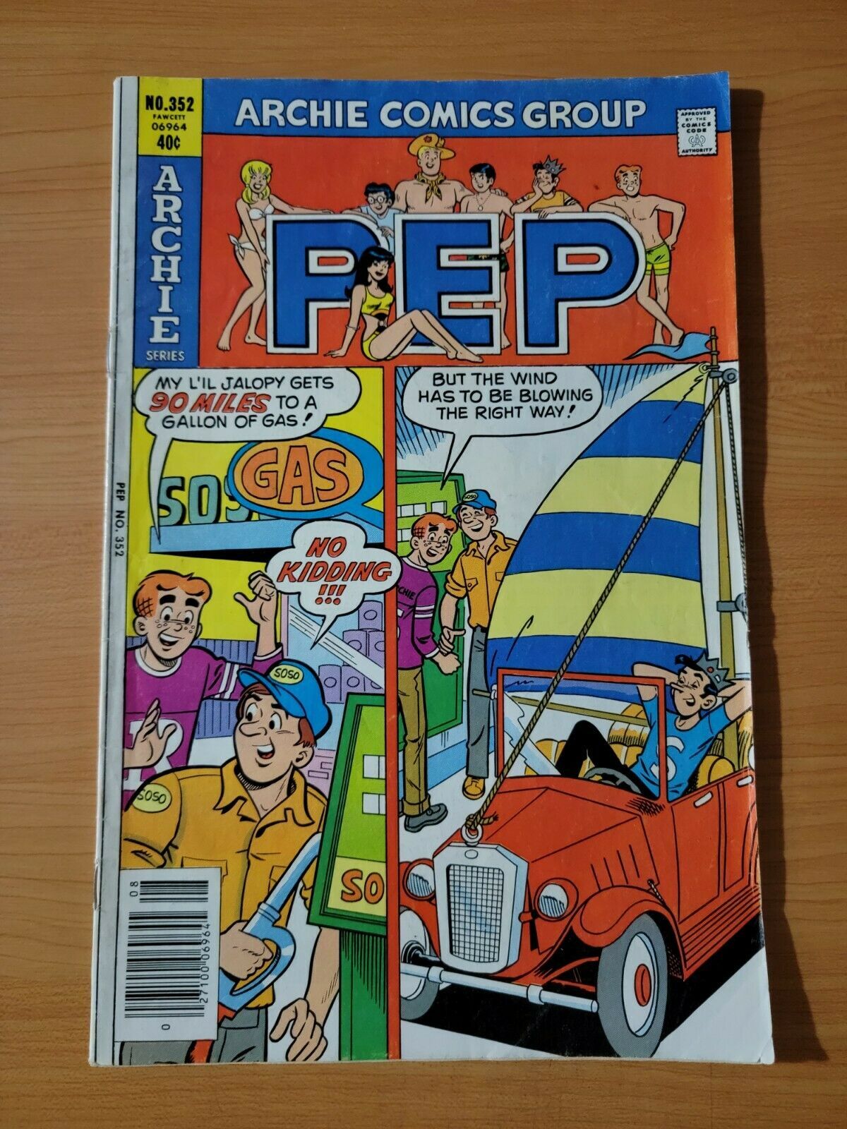 Item DescriptionPEP #352Publisher: Archie ComicsPublished: 1979Item Grade/ConditionGrade: FINE For more information about this grade and other grades, please see our grading standards.~ AS ALWAYS, WE TAKE HIGH DEFINITION PICTURES OF ALL OUR COMICS ~ For more detail use the ZOOM Function and check them out yourself! ~ Pictures are of the EXACT Comics in this listing!Shipping Info:United States: Orders of all sizes, big and small ship for a flat fee of - $3.50 ~WE LOVE FREE SHIPPING ~ This Standard May not apply to US Orders!~International: We use Calculated Shipping! ~ This insures that you get the LOWEST POSSIBLE COST! ~ Please give us one business day to calculate large orders! As a courtesy to our customers, we insure all orders over 50$ US ~ YOU DONT PAY EXTRA!Delivery TimeWe process and ship all orders within 1 business days. Once shipped, estimated U.S. transit time is 2-10 business days; international 14-21 business days.(Orders placed on Friday afternoon as well as weekends will be shipped the next business day as we do not ship on the weekends).PackingOmnomax Traders has mastered packing to ensure our orders of a "damage-free transport."Using the following methods, we have seen a nearly perfect 99% success rate for undamaged comics!Here is how our orders ship:Orders of 1-10 items:Bagged AND Boarded ( If Comic value is 10$ or More )Tightly secured between 2 stiff pieces of corrugated cardboardSealed on all 4 sides with strong packing tape (Items doesn't even wiggle).Protected in a large mailing envelope Orders of 10 and more:All items are bagged, and bottom item is in a board for extra protection of other items.All items are then placed together in a heavy bag. Tons of heavy packing paper &/Or Bubblewrap shields the items.Durable boxes hold the items*Now this method is nearly perfect! however we have seen damage happen to items ( only once or twice a year ) ~ this is often due to bad handling by the postal service. Always remember to contact us if this happens! we are committed to quality service!*Offers History