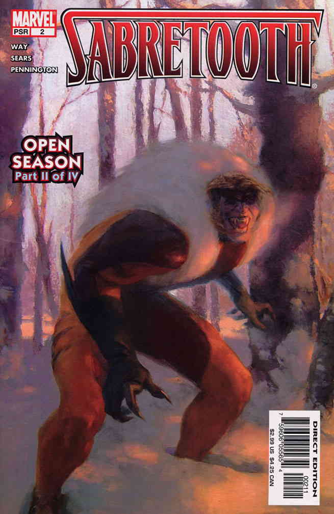 Item: Sabretooth (Vol. 3) #2 | Publisher: Marvel | Cover Date: December 2004 | Writer: Daniel Way | Artist: Bart Sears | Cover Artist: Paolo Rivera | Appearances: Sabretooth, Sasquatch | Storylines: Open Season, Part 2; Cold Comfort | With Economy shipping, each additional comic ships for just 50 cents more to customers in the USA. This listing contains a stock photo and information from ComicBase™ and © Human Computing. The stock photo is for reference only. If you would like to see a photo of the actual item, please message us prior to purchasing.Seller Information