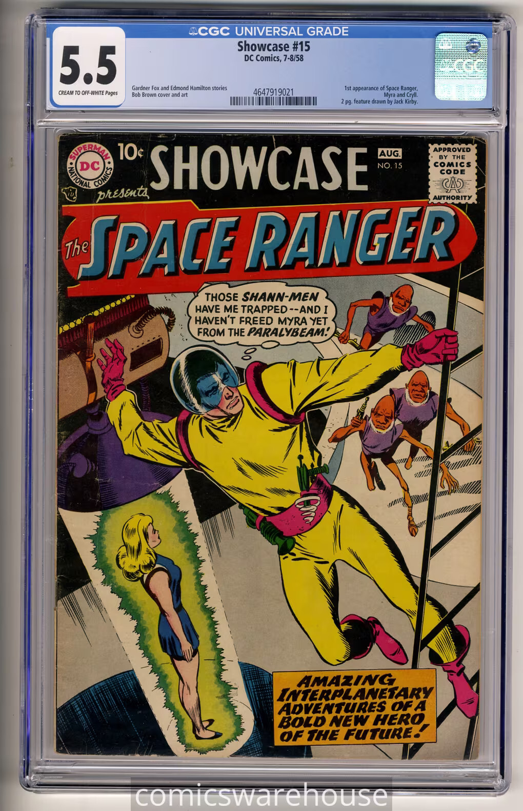 Grade: 5.5 Fine-Showcase #15 (DC 8/58) CGC 5.5 1ST APPEARANCE SPACE RANGER MYRA CRYLLCGC graded #4647919021TERMS & INFORMATIONIf you are ordering more than one CGC book WAIT for an invoice to get the best shipping ratePayment is due within 3 business days. Unless we are notified via email of special circumstances a case will be opened for non payment. Auctions that are unpaid after 3 days will be considered in default and relisted.SHIPPING & HANDLINGRETURNSYour satisfaction is guaranteed. We accept returns for the full cost of the item (not including postage) within 30 days of shipping out your order for any reason.Credit is given on receipt of the item.