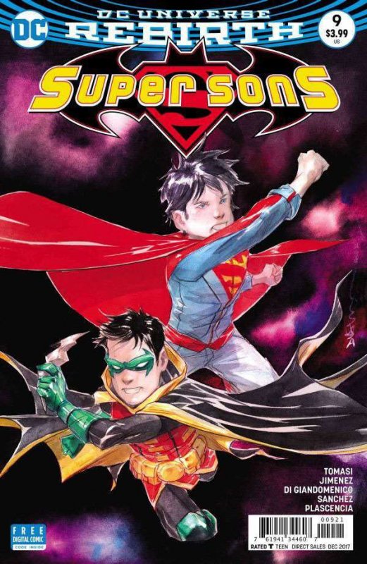 Item: Super Sons #9A | Publisher: DC | Cover Date: December 2017 | Writer: Peter J. Tomasi | Artist: Jorge Jimenez | Cover Artist: Dustin Nguyen | Storylines: Planet of the Capes, Part 4 | Notes: Var Cover by Dustin Nguyen | With Economy shipping, each additional comic ships for just 50 cents more to customers in the USA. This listing contains a stock photo and information from ComicBase™ and © Human Computing. The stock photo is for reference only. If you would like to see a photo of the actual item, please message us prior to purchasing.Seller Information