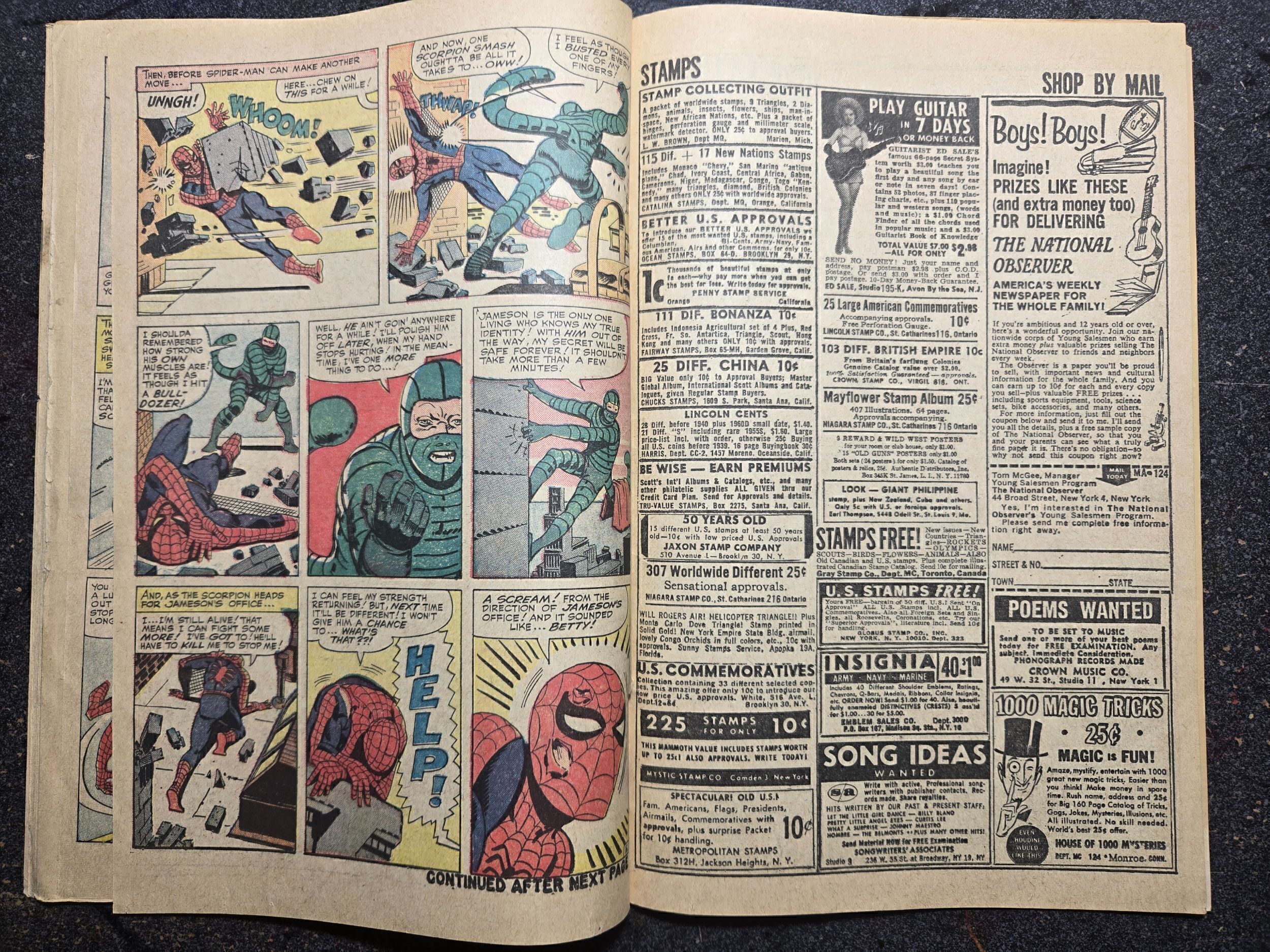 1st appearance of Mac Gargan as Scorpion. Nice copy of Amazing Spider-man #20. That being said, it is missing the pin up on the interior it has been reported to me after a collector looked over the scans. I have provided scans of both the front and back, with images from my phone of all interior pages. This is a comic that has been in a long box for 30+ years. Rebagged and boarded in 2025. It presents well, that being said, with a clean and press this can really shine, as there is a grease spot on top right 1/4 way down, the left side has heavy wear, and there is that "5" in grease pencil between Spider-man and Scorpion. As grading is very subjective, we are taking offers on this comic. This comic is being sold on behalf of a friend...Seller Information