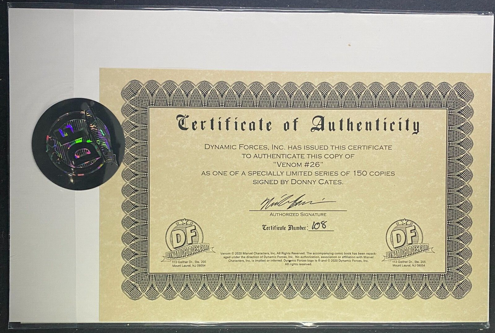 SILVER AGE COMICS 22-55 31st STREET ASTORIA, NY 11105 Description: Venom (2018) #26 (#191) NM Dynamic Forces Signed Donny Cates #108/150 w/COA And as always, you found it here at the home of NO RESERVE auctions, Silver Age Comics ! Yes, we combine shipping!!