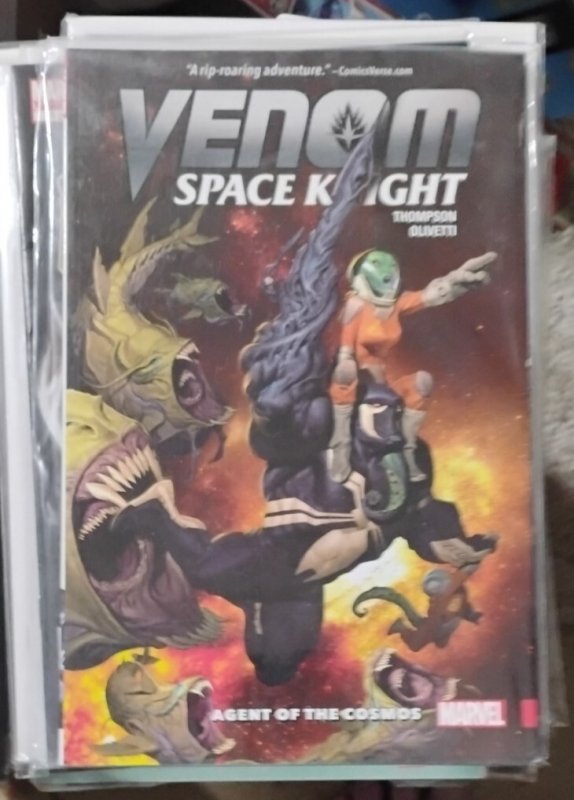For auction is 1 comic book from the series " venom spaceknight " volume 1 (2016-2018) cover price. .3.99 issues # tpb agent of the cosmos volume 1 - 1st printing. "agent of cosmos!" collects venom space knight (2015) #1-6.Written by robbie thompson. Art and cover by ariel olivetti.Flash thompson is many things. Soldier. Veteran. Double amputee. Guardian of the galaxy. Host to a powerful yet newly tamed alien symbiote.Now flash is tasked with being an intergalactic ambassador of earth and an agent of the cosmos! Join flash for high adventure in deep space as he swashbuckles his way across the universe! But as venom travels the galaxy, helping the helpless and punishing the violent, he will go from guardian to gladiator when he's made to fight in an alien arena. And when facing an emergency on a planet of volcanoes, how can he serve as a space knight when his symbiote suit of armor is afraid of fire?And when an enemy seeks to corrupt the symbiote, will this mark the return of the big bad venom?Softcover, 136 pages, full color.Published by marvel comics if something is not listed in this auction, please do no assume that it comes with it! Email us with any questions or concerns prior to bidding if you are unsure. Any auction or correspondence that occurs over the weekend or after business hours will be handled the following business day. All questions will be answered between 9:00 am and 5:00 pm monday thru fridaythe comics are bagged and boarded the comics will also be shipped with extra protection to help prevent damage by post office. Shipping pricing shipping is $6.00 for this item and only $0.75 cents each additional item, i will combine all items look at my feedback , i am a top rated 99.5 % + Hip seller........I have been selling on Hip for 10 years, a seller you can trust and paypal verified. I will work with you in any payment situation, buy it now from a trusted seller if you have any problems or questions, please use the contact seller link or email me directly payment terms: paypal is the only form of payment this site allows and payment is expected within 48 hours of auction ending. I will ship your merchandise within 1 day (once payment has cleared) or the next usps business day. Shipping terms: i ship normally 2-3 times a week, normally on mondays, wednesdays and fridays, sometimes saturdays depending on volume. Please be patient for the u.S. Post office to deliver your product in a timely manner. Normal shipping times for shipping is 1-10 days. Please visit usps.Com to see the proper schedule of days for each delivery method. If an item is shipped back to us for any reason, we do not reimburse your shipping cost. Thanks and enjoy :) please allow additional handling time due to Hips new payment processing, once received they send funds to my bank which adds 1-4 additional days beforei receive the funds for use to purchase postage to ship.